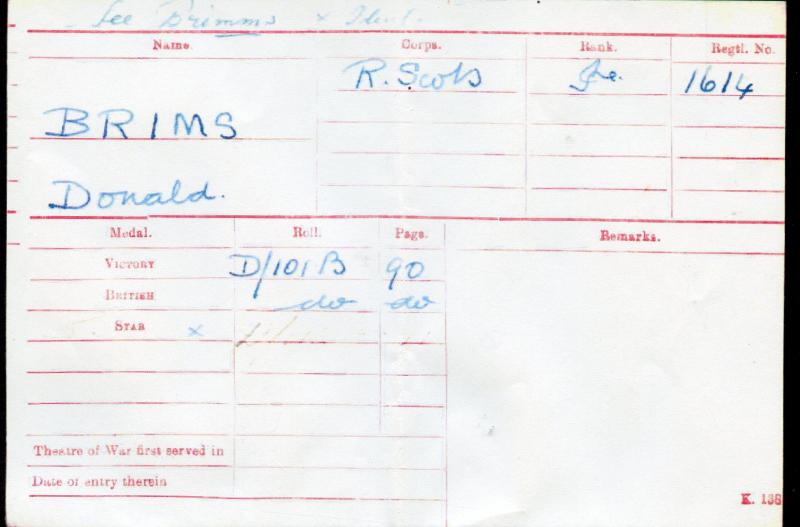 WW1 British War & Victory Medals Pair to Pte Donald Brims, 4th Battalion Royal Scots
