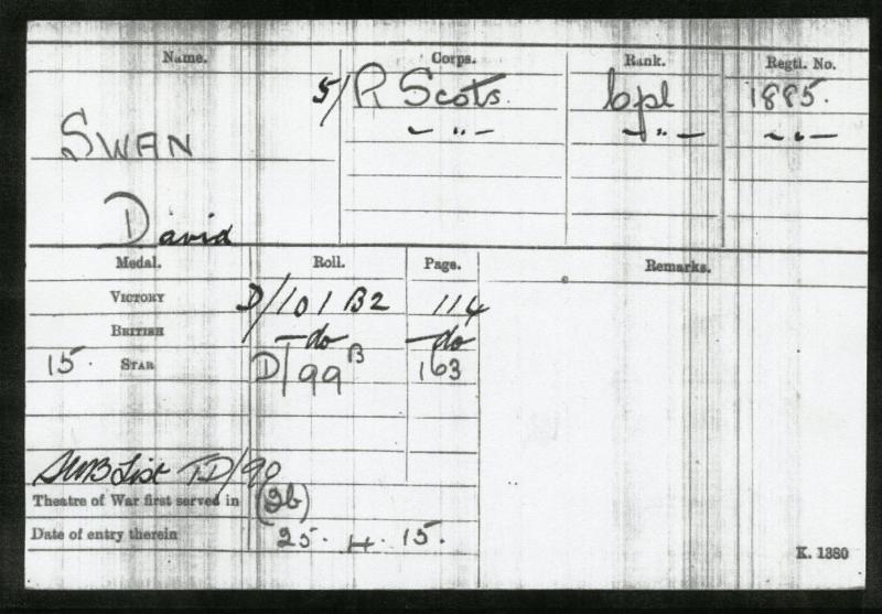 1914-15 Star, British War Medal & Silver War Badge To Piper Cpl David Swan 5th Battalion Royal Scots