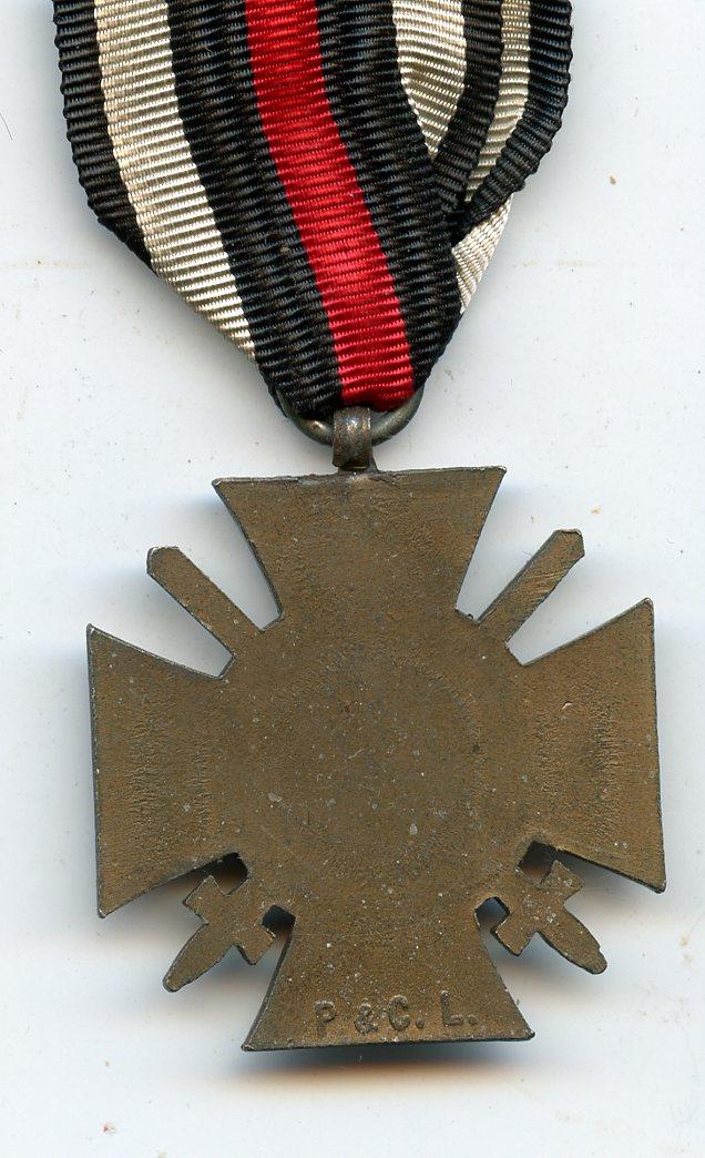 Germany Honour Cross Medal 1914-18 Makers Mark P & C L Paul Mann & Crone Ludenscheid