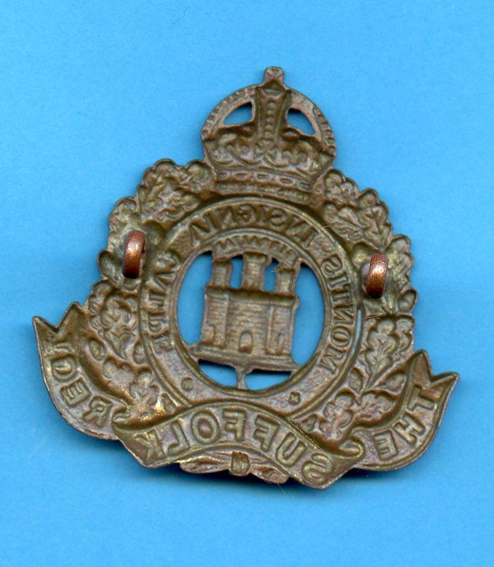 The Suffolk Regiment WW1 Brass Cap Badge King's Crown 2 Lug Fitting Ref Badge Books Kipling & King 604 Cox 1460 Military Badges of The British Empire 1914-18