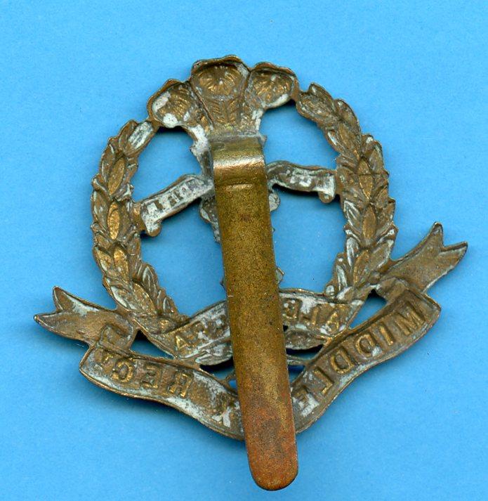 The Middlesex Regiment WW1 Bi- Metal Cap badge Ref Badge Books Kipling & King 672 Cox Military Badges of The British Empire 1914-18 ( 1572)