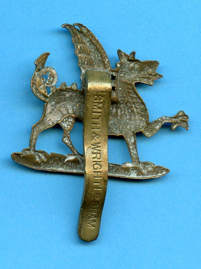 1st Battalion, The Monmouthshire Regiment Brass Cap Badge Slider Fitting Ref Cox Military Badges of The British Empire 1914-18 (1627)
