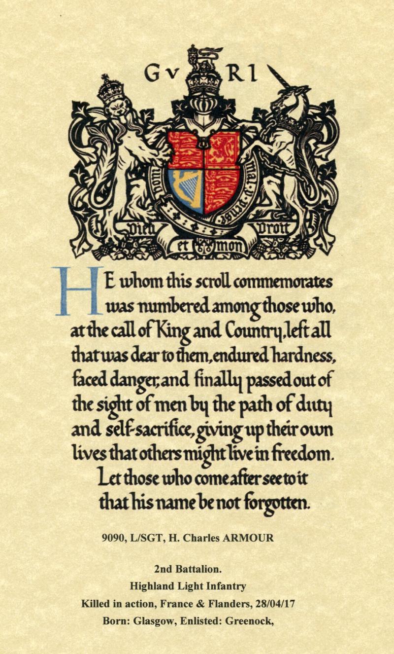 2nd Bn., Highland Light Infantry was Killed in Action on 28 April 1917 Age 37