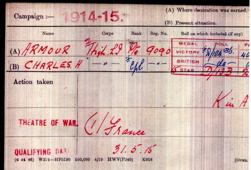 WW1 1914-15 Star To Lance Sergeant Charles Hill Armour, 2nd Bn., Highland Light Infantry