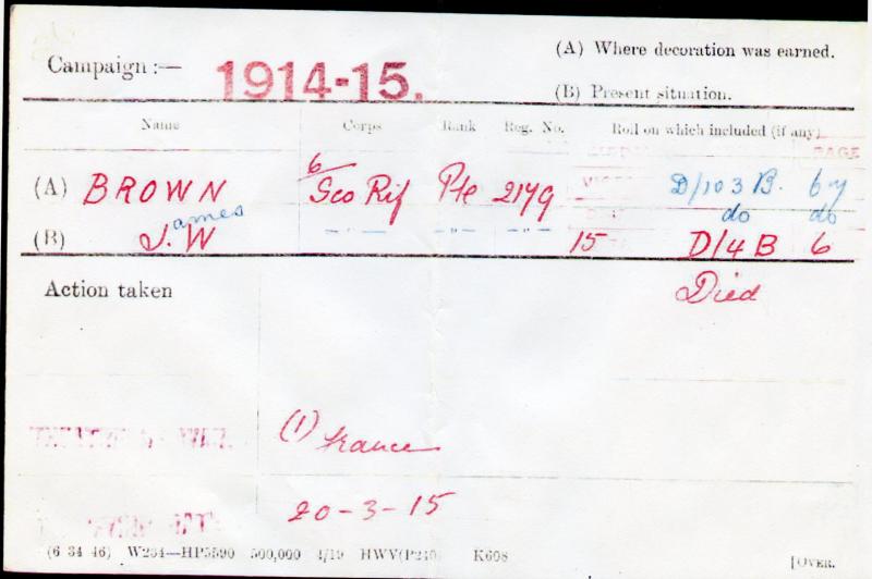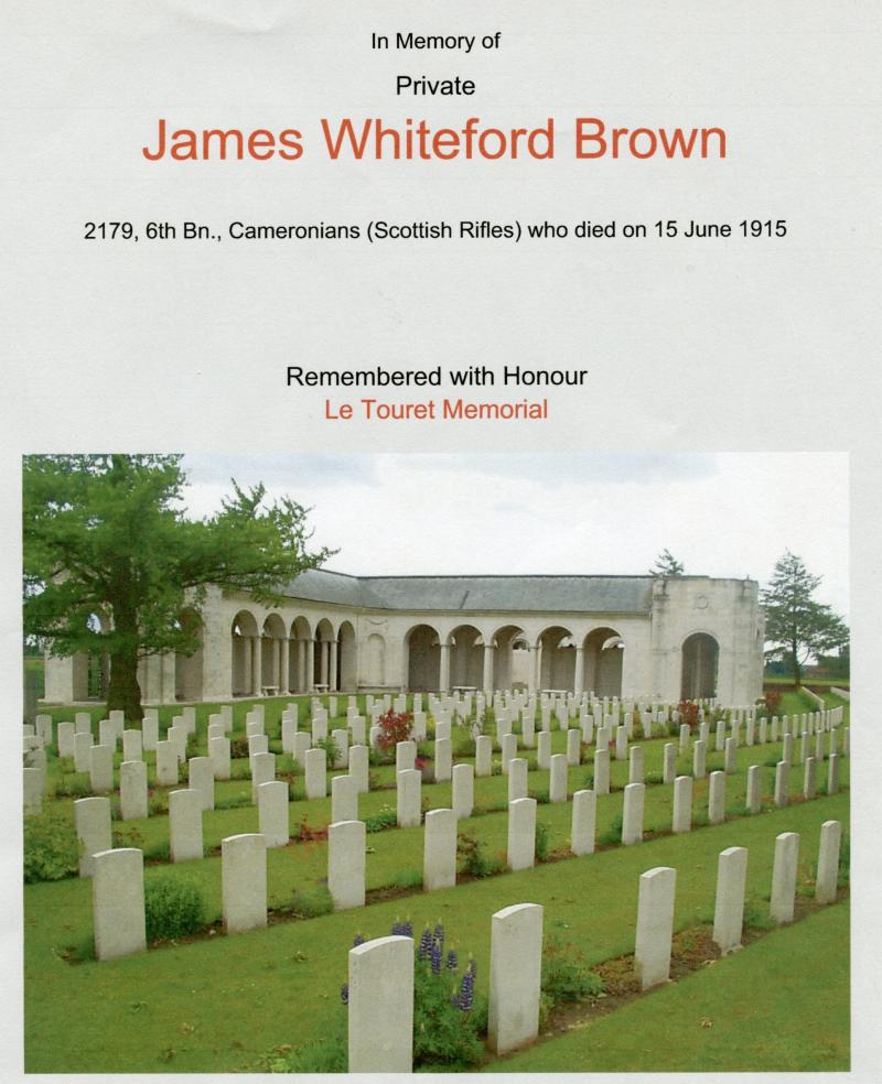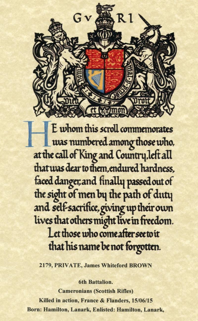 6th Bn., Cameronians (Scottish Rifles) was Killed in Action on 15 June 1915
