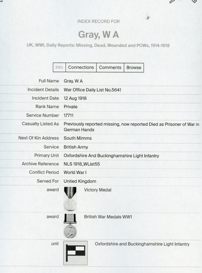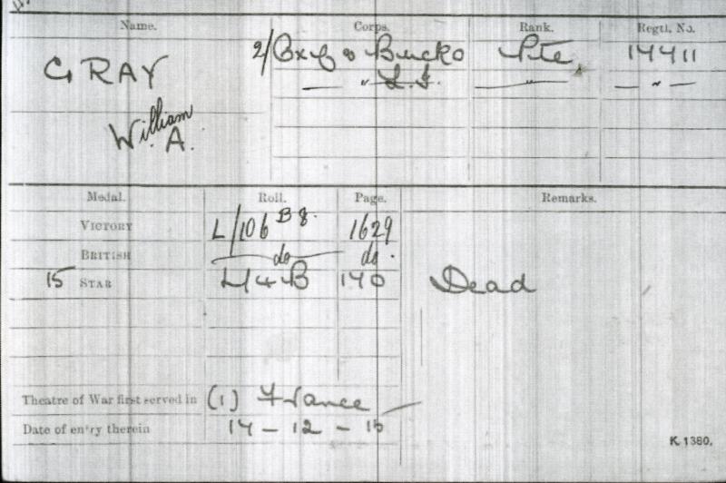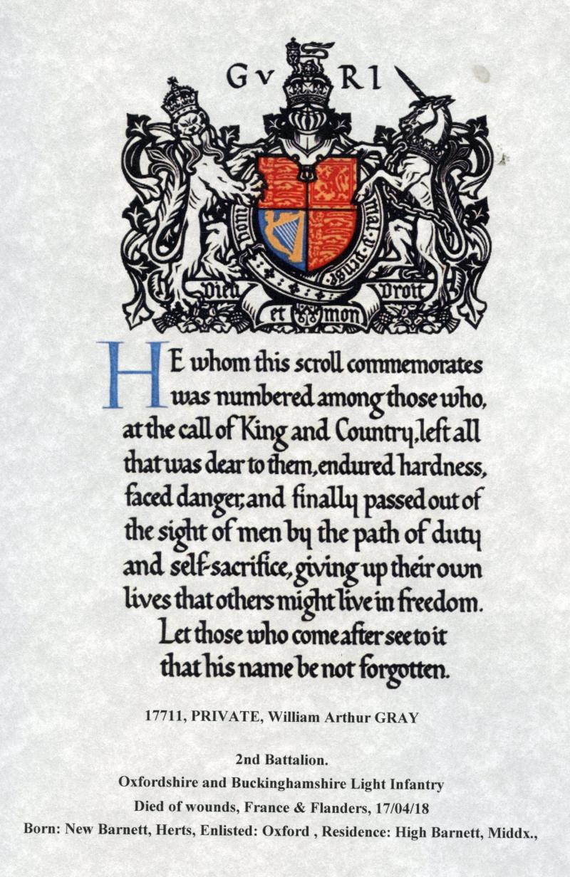 17711 Pte W. A. Gray, Oxf & Bucks. L. I.