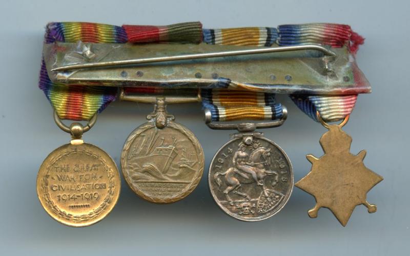 1914-15 Star, British War Medal, Merchantile Marine Medal 1914-18, Victory Medal 1914-1919 Mounted for wear