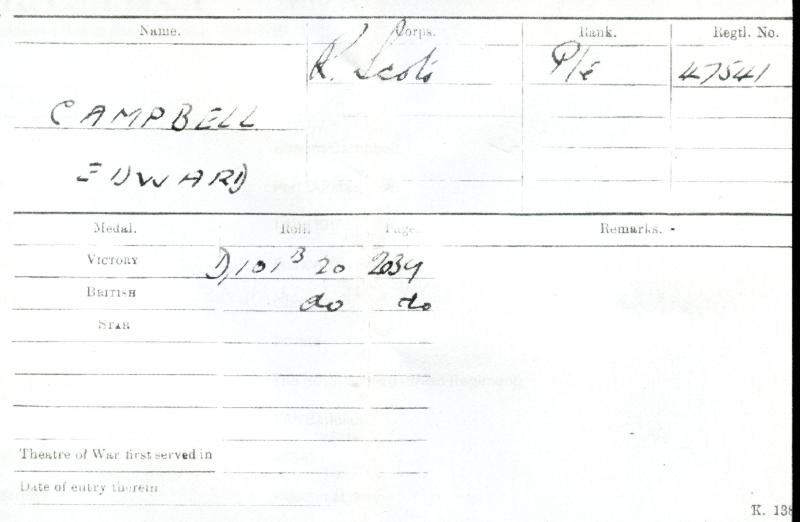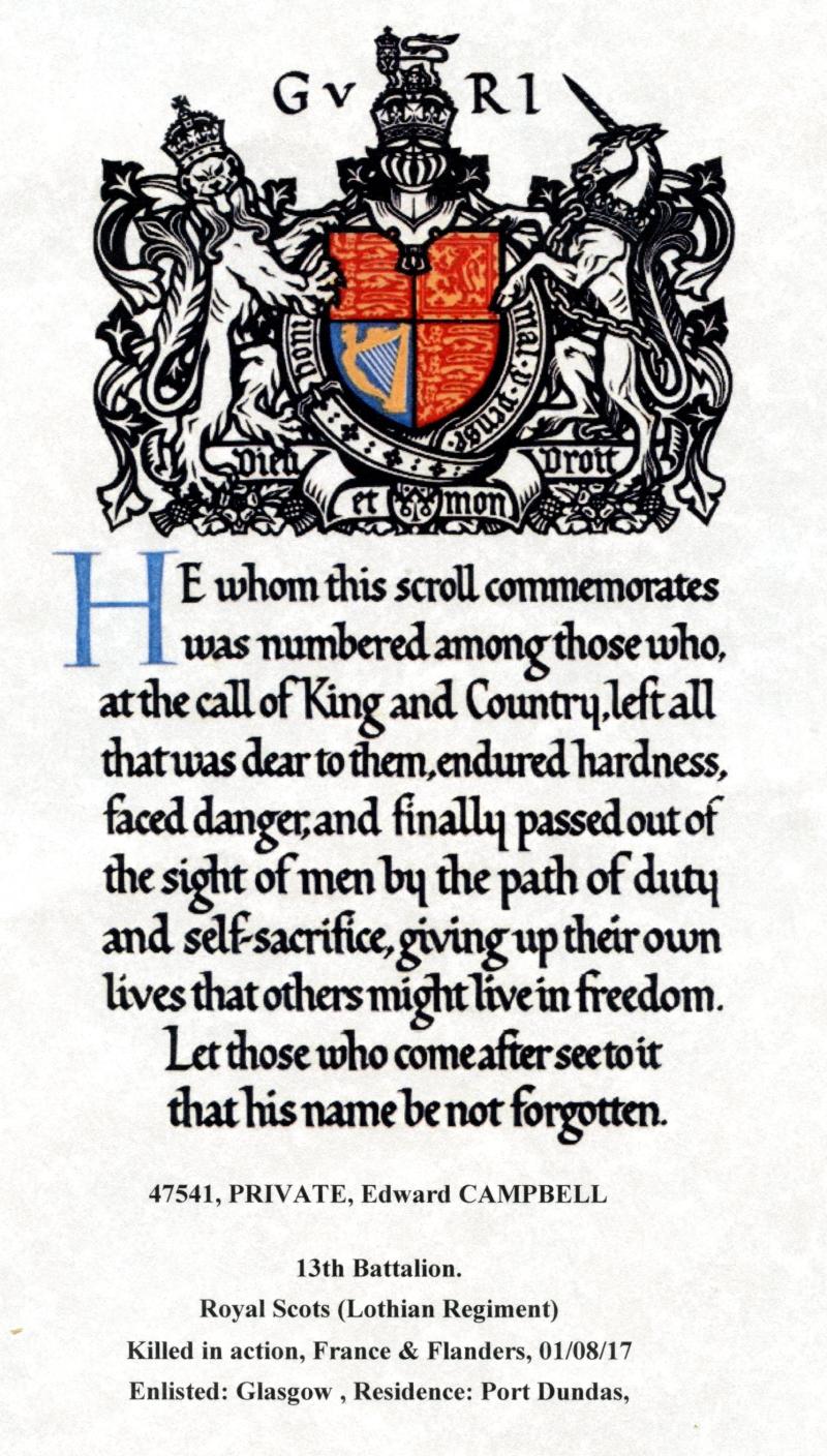 Pte Edward Campbell, 13th Bn., Royal Scots