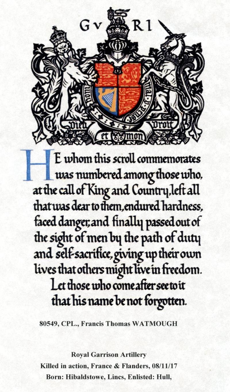 Son of Mrs. E. Watmough, of 38, Wellesley Avenue,Hull; husband of Elsie Mary Watmough,