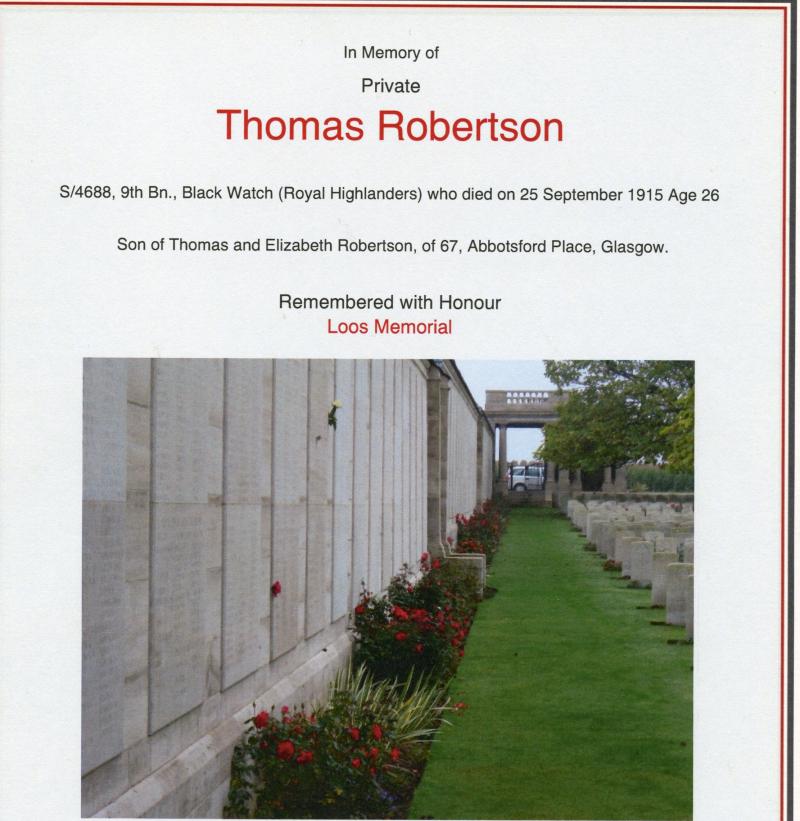 Son of Thomas and Elizabeth Robertson, of 67, Abbotsford Place, Glasgow.