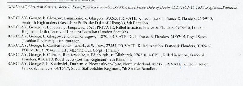 WW1 Memorial Plaque George Barclay 5 Men with this name listed on the Commonwealth War Graves