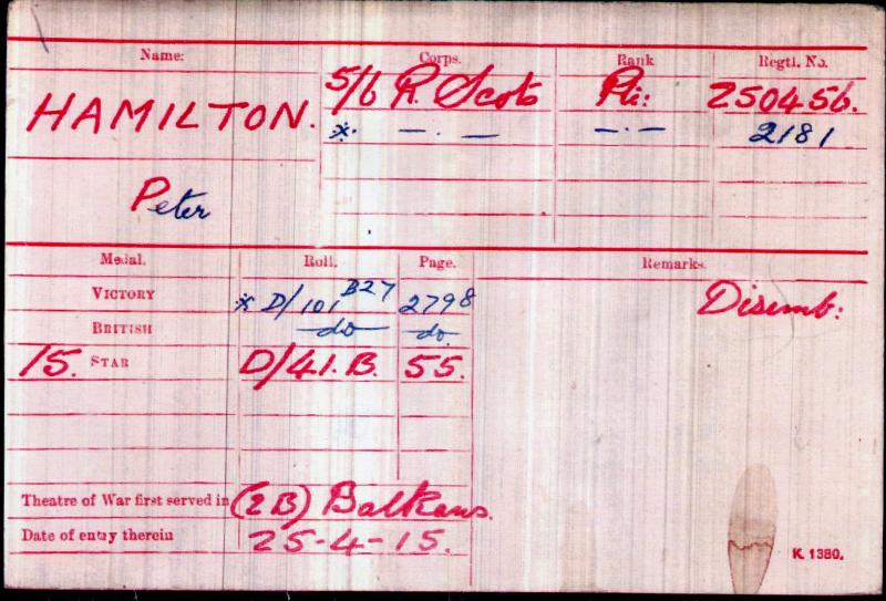 Pte Peter Hamilton, 5/6th Battalion Royal Scots