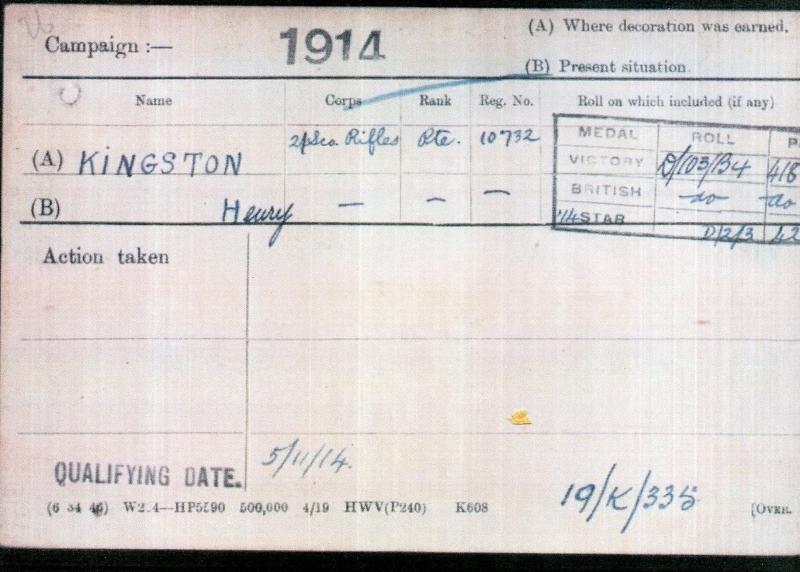 Cpl Henry Kingston, 2nd Battalion Cameronians (Scottish Rifles)