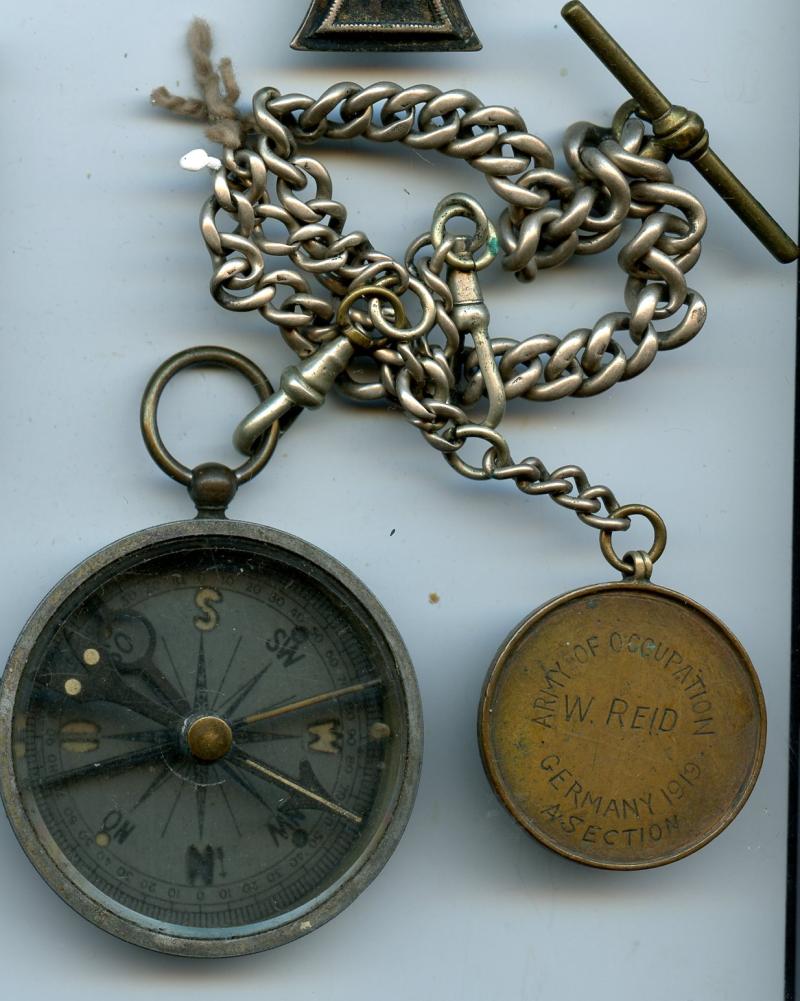 G. Lufft Stuttgart German Pocket Compass fitted on pocket watch chain with medallion named to Reid