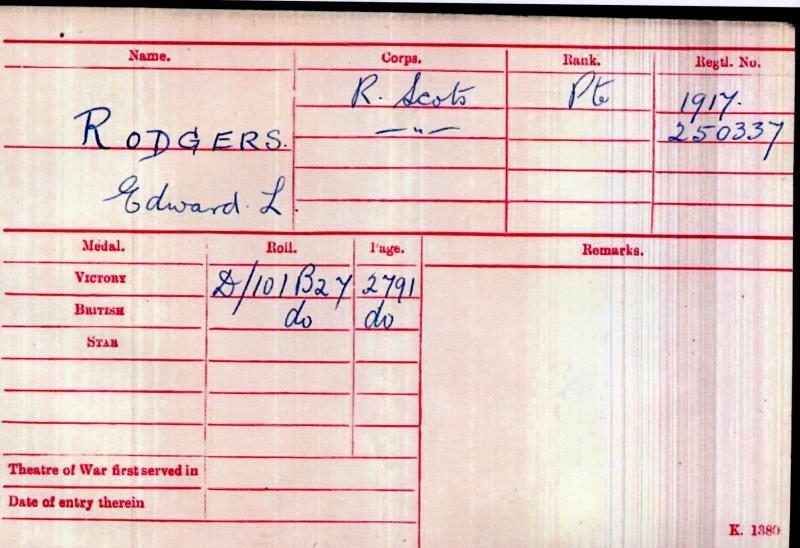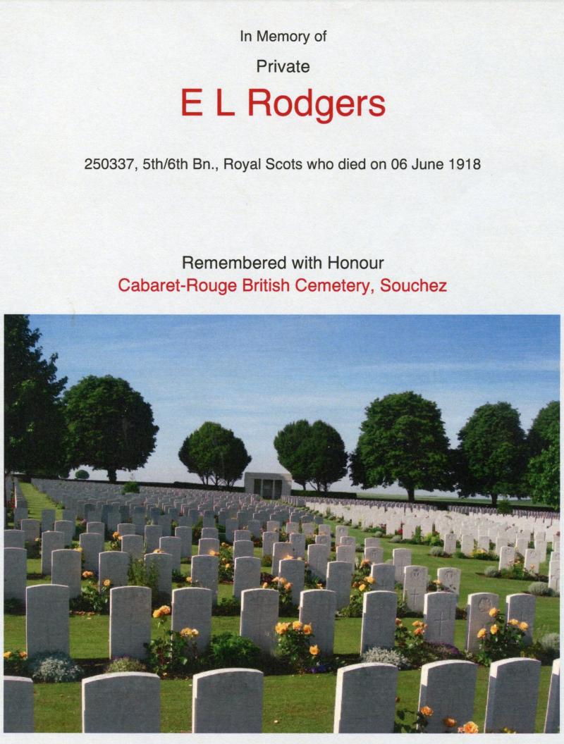 Pte Ebenezer L Rodgers, 5th/6th Bn., Royal Scots Died of Wounds on 06 June 1918