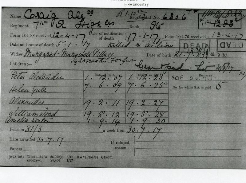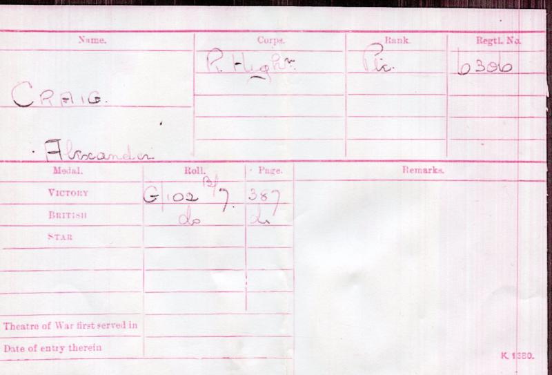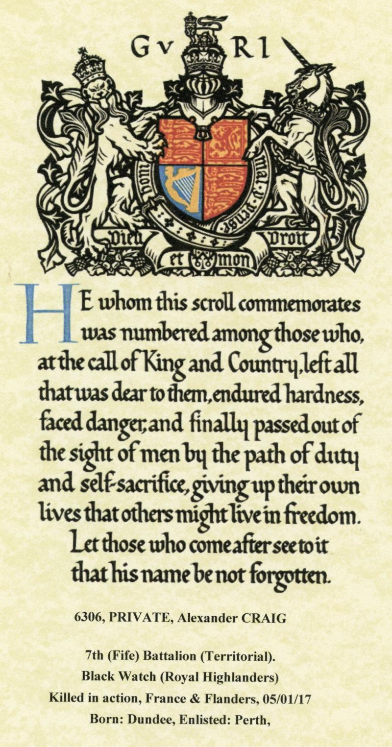 With a copy from Arbroath in the Great War with picture of Alexander Craig which reads