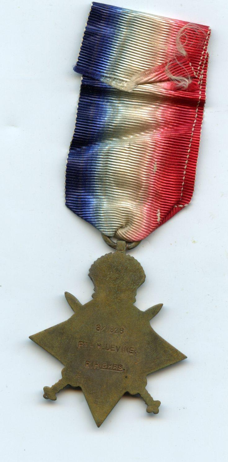 WW1 1914 Mons Star Medal To Pte Harry Devine 1st Bn., Black Watch (Royal Highlanders ( Prisoner of War )