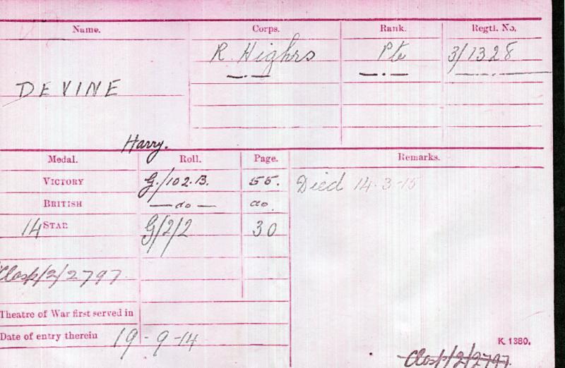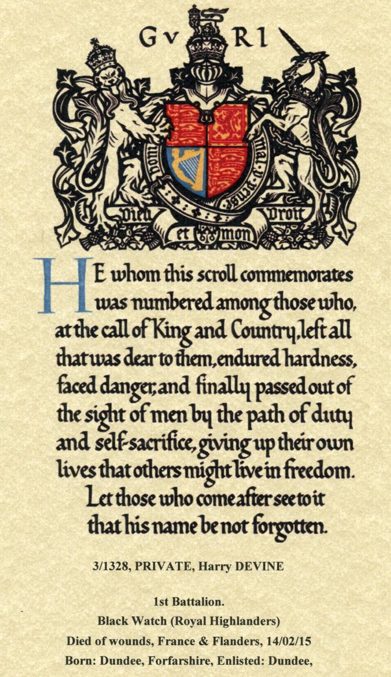 Son of Edward and Jessie McLaughlan Devine, of 6, Lochee Rd.,Dundee. Born at Dundee.