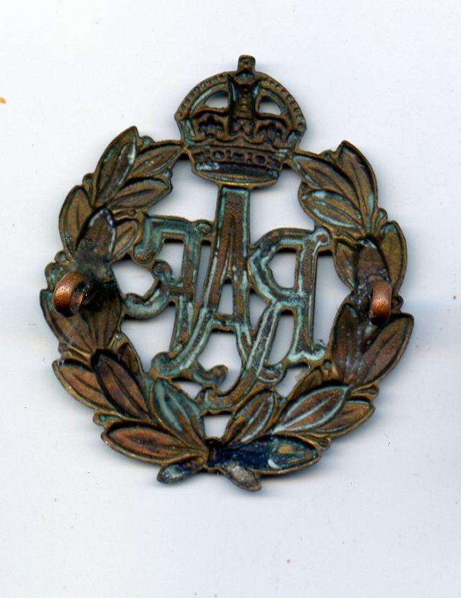 Royal Air Force Brass King's Crown Cap Badge 2 lug fitting Royal Air Formed in March 1918