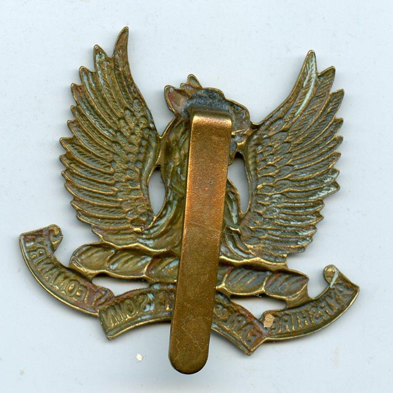 Ayrshire Yeomanry Brass Cap Badge Slider Fitting Ref Kipling & King 2298 Cox Military Badges of The British Empire 1914-18 (1416)