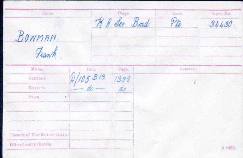 Pte Frank Bowman, 1st Bn King's Own Scottish Borderers