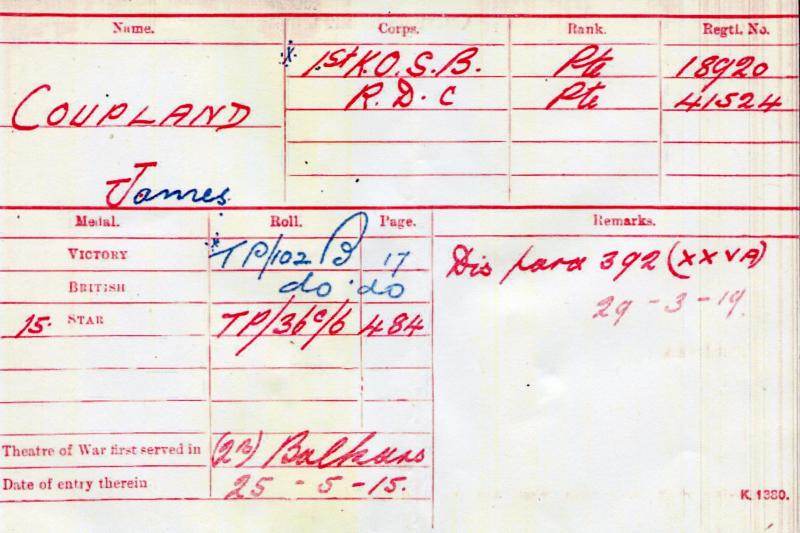Pte James Coupland, 1st Bn King's Own Scottish Borderers