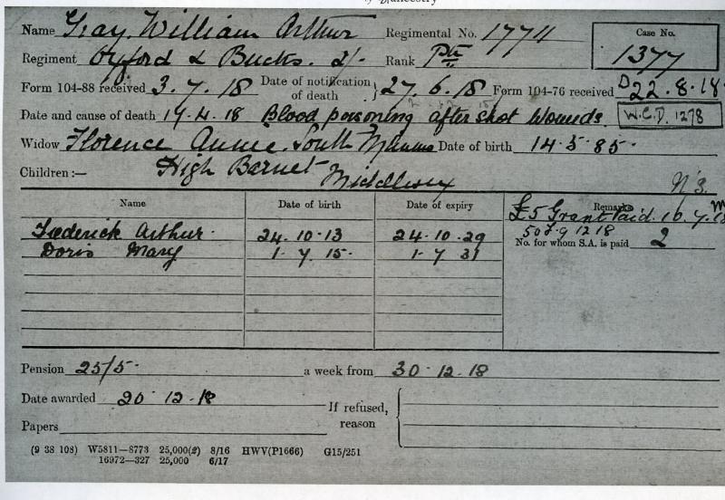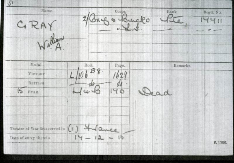 17711 Pte W. A. Gray, Oxf & Bucks. L. I.