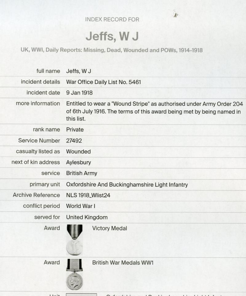 27492 Pte W. J. Jeffs Oxf. & Bucks. L.I.
