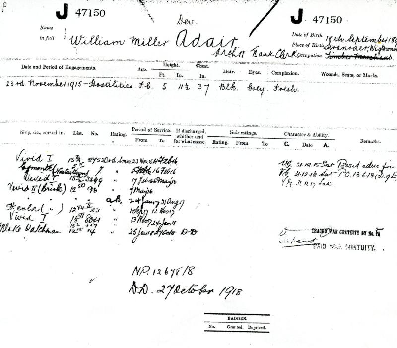 Son of Mr. J. Adair, of 13, Agnew Crescent, Stranraer, Wigtownshire.