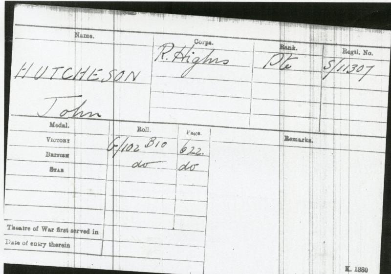 WW1 British War & Victory Medals Pair To L/Cpl John Hutchison 2nd Bn., Black Watch (Royal Highlanders)