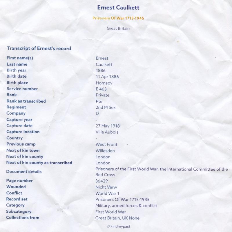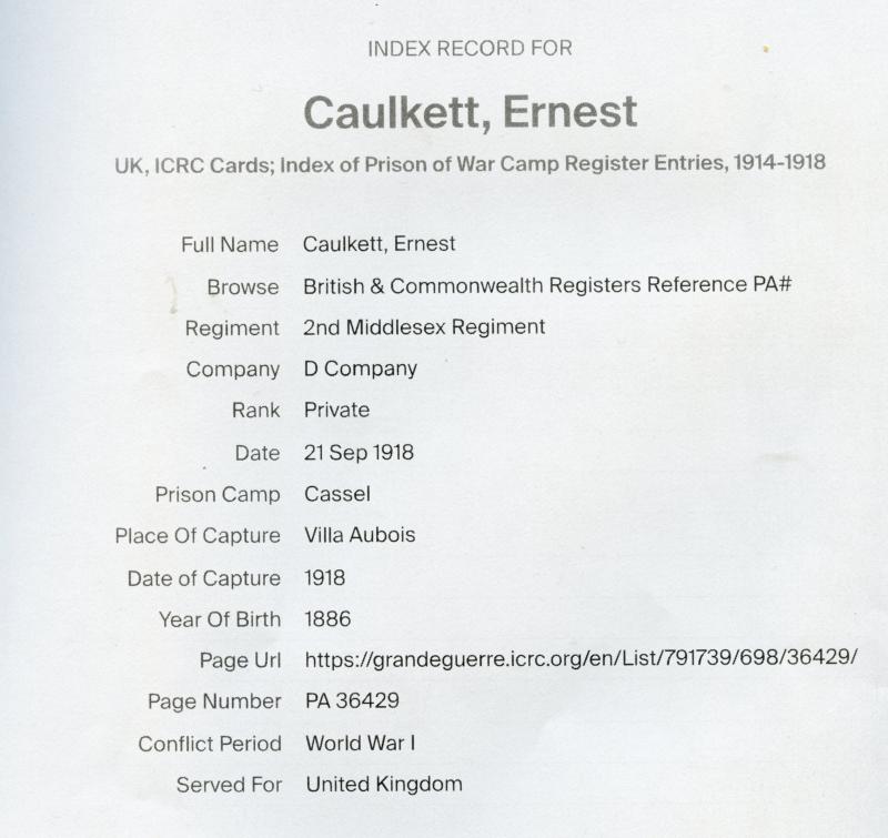 A. C. Sjt Ernest Caulkett, Middlesex Regiment